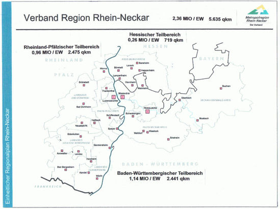 ÜbersichtskarteHauptthema des 30. Abgeordnetengesprächs der SPD-Fraktion im Verband Region Rhein-Neckar im Januar dieses Jahres war die Forderung nach einer Umstellung der seitherigen Praxis der Zuweisung von Fördermitteln der Europäischen Union über die einzelnen Bundesländer. Gemeinsam mit den zahlreich teilnehmenden SPD-Abgeordneten aus der Metropolregion im Europäischen Parlament, im Deutschen Bundestag und den Landtagen von Baden-Württemberg, Hessen und Rheinland-Pfalz wurden Möglichkeiten erörtert, der Region Rhein-Neckar ohne den Umweg über die 3 beteiligten Bundesländer direkt die anteiligen Fördermittel zur Verwendung in eigener Zuständigkeit und Verantwortung zuzuweisen. Nur so kann gewährleistet werden, dass die vorhandenen Mittel entsprechend den Erfordernissen der Gesamtregion eingesetzt werden.